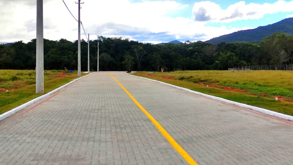 Infraestrutura completa — ruas largas e bem projetadas, rede de energia elétrica, drenagem pluvial e iluminação pública.