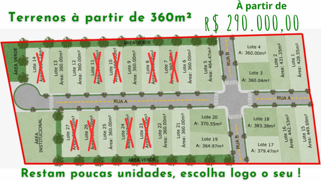 Garanta seu espaço em um dos loteamentos mais promissores da região. Lotes a partir de 360 m², com preços iniciais de R$ 290.000,00. Ideal para quem busca segurança, qualidade e retorno no médio e longo prazo.